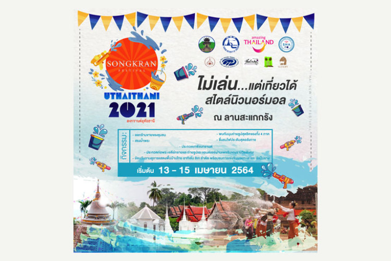 สงกรานต์นี้ ไม่เล่นน้ำแต่เที่ยวได้สไตล์นิวนอร์มอล การท่องเที่ยวแห่งประเทศไทยผู้สนับสนุนการจัดงานสงกรานต์อุทัยธานี SONGKRAN FESTIVAL UTHAITHANI 2021 ระหว่างวันที่ 13-15 เมษายน 2564 ณ ลานสะแกกรัง จังหวัดอุทัยธานี เพื่อสืบสานประเพณีไทยการท่องเที่ยวเชิงวัฒนธรรมในรูปแบบนิวนอร์มอล สร้างการรับรู้และทำให้จังหวัดอุทัยธานีเป็นที่รู้จักในเชิงการท่องเที่ยวและเป็นจังหวัดทางเลือกในการท่องเที่ยวต่อไป เพื่อสร้างรอยยิ้มและความสุขให้ผู้คนที่มาร่วมงานได้เติมเต็มความสุขร่วมกันในครอบครัว โดยมีการสวมใส่ชุดไทยร่วมงานสืบสานประเพณีไทย โดยกิจกรรมภายในงาน มีหลากหลาย อาทิ