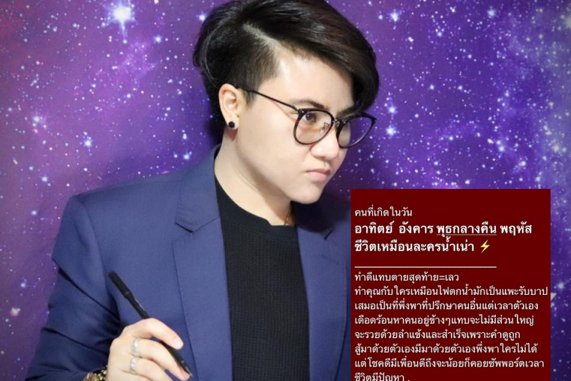 วันที่ 8 เมษายน 2564 หมอเค้ก Magic Designs เผย ว่า คนที่เกิดในวันอาทิตย์ อังคาร พุธกลางคืน พฤหัสบดี ชีวิตเหมือนละครน้ำเน่า ทำดีแทบตายสุดท้าย เลว ทำคุณกับใครเหมือนไฟตกน้ำ มักเป็นแพะรับบาปเสมอเป็นที่พึ่งพาที่ปรึกษาคนอื่นแต่เวลาตัวเองเดือดร้อนหาคนอยู่ข้างๆ แทบจะไม่มี