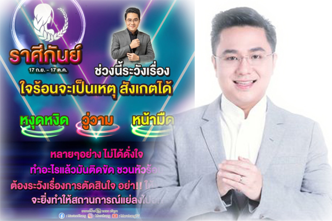 หมอช้าง ทศพร ศรีตุลา โพสต์ข้อความผ่านเฟซบุ๊ก หมอช้าง ทศพร ศรีตุลา เผยถึงราศีที่ควรระวังเรื่องใจร้อนจะเป็นเหตุ โดยระบุว่า... ราศีกันย์ โดยช่วงนี้ระวังเรื่องใจร้อนจะเป็นเหตุสังเกตได้ หงุดหงิด วู่วาม หน้ามืด หลายอย่างไม่ได้ดั่งใจ ทำอะไรแล้วติดขัด ชวนหัวร้อน ต้องระวังเรื่องการตัดสินใจ อย่าให้ขาดสติ จะยิ่งทำให้สถานการณ์แย่ไปอีก