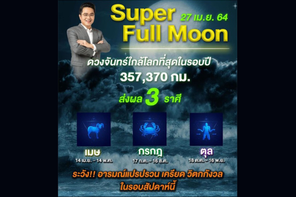 “หมอช้าง” ทศพร ศรีตุลา หมอดูชื่อดัง เปิดเผย ถึง ปรากฏการณ์SuperMoon ที่จะส่งผลกับ 3 ราศี ผ่านอินสตราแกรม @morchang ระบุข้อความว่า...ของจริงคืนนี้! จากเว็บไซต์NASA คืนนี้จะมีปรากฏการณ์SuperMoon ดวงจันทร์เข้าใกล้โลกมากที่สุดในรอบปี ในทางโหราศาสตร์ดวงจันทร์เป็นดวงดาวที่ส่งผลในเรื่องของอารมณ์ ทำให้ 3 ราศีที่เตือนต้องระวังในสัปดาห์นี้มากเป็นพิเศษ และจะมีภัยธรรมชาติเช่นแผ่นดินไหวที่แรงขึ้นในช่วงนี้ ปรากฏการณ์นี้ไม่ได้ให้ไหว้ขอพรจากพระจันทร์ แต่แนะนำให้สวดมนต์ก่อนนอนเพื่อให้จิตใจสงบและมีสติมากขึ้น สามารถสวดบทที่เคยสวดเป็นประจำ หรือมือใหม่เริ่มด้วยการสวดบทบูชาพระรัตนตรัย(อะระหังสัมมา)ก่อนก็ได้ครับ? #supermoon #หมอช้าง