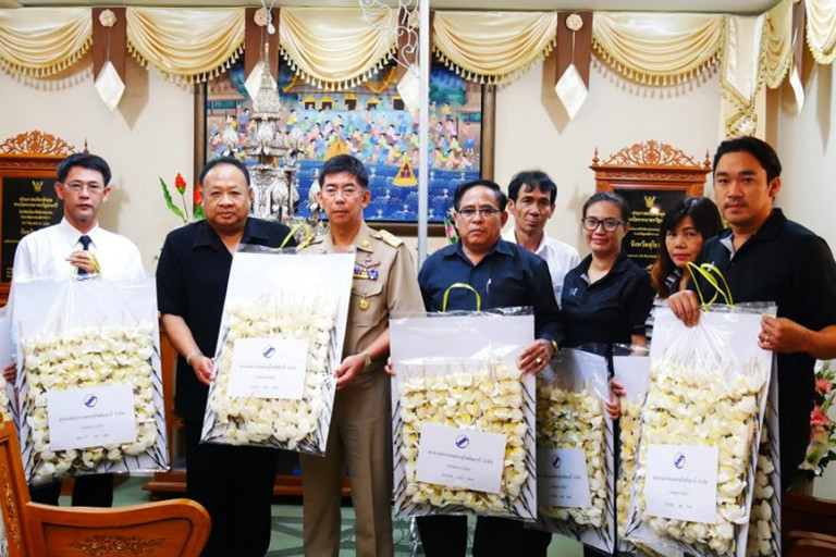 นายปิติ แก้วสลับสี ผู้ว่าราชการจังหวัดสุโขทัย รับมอบดอกไม้จันทน์ (ดอกดารารัตน์) จำนวน 2,000 ดอก จากนายอรุณ แก้วน้อย สหกรณ์จังหวัดสุโขทัย เพื่อทูลเกล้าฯ ถวายในพระราชพิธีถวายพระเพลิงพระบรมศพ พระบาทสมเด็จพระปรมินทรมหาภูมิพลอดุลยเดช บรมนาถบพิตร ณ ศาลากลางจังหวัดสุโขทัย