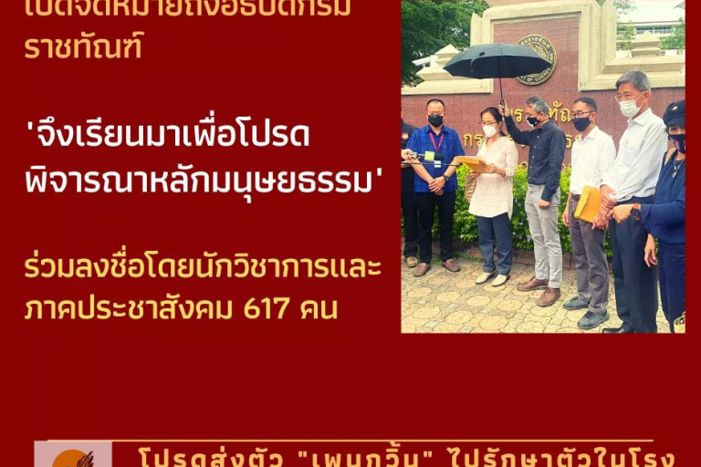 เครือข่ายนักวิชาการเพื่อสิทธิพลเมือง (คนส.) จดหมายเปิดผนึกถึงอธิบดีกรมราชทัณฑ์ เรื่องขอให้ส่งตัวนายพริษฐ์ ชิวารักษ์ (เพนกวิ้น) ไปรักษาตัวในโรงพยาบาลที่ได้มาตรฐาน