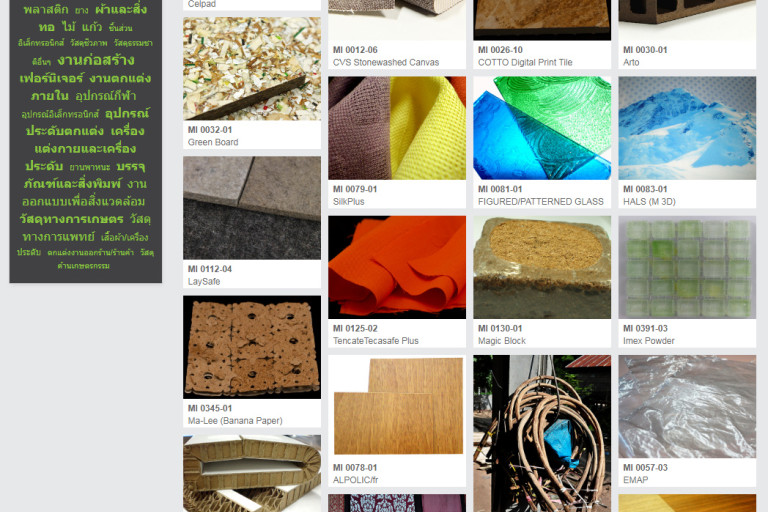 สำหรับฐานข้อมูลออนไลน์ดังกล่าวประกอบไปด้วยรายละเอียดข้อมูลวัสดุไทย รายละเอียดผู้ผลิตและช่องทางการติดต่อ โดยแบ่งเป็นหมวดหมู่ตามประเภทของวัสดุและการใช้งาน อาทิ พลาสติกชีวภาพ เซรามิก กระดาษ บรรจุภัณฑ์และสิ่งพิมพ์ ฯลฯ ทั้งนี้