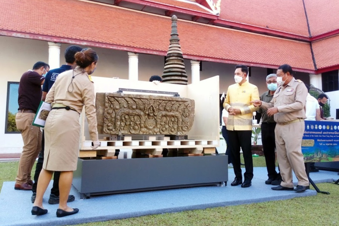 กรมศิลป์จัดพิธีบวงสรวงต้อนรับทับหลังปราสาทหนองหงส์ จ.บุรีรัมย์ และทับหลังปราสาทเขาโล้น จ.สระแก้ว กลับสู่ประเทศไทย เตรียมจัดนิทรรศการให้ประชาชนชม 3 เดือน