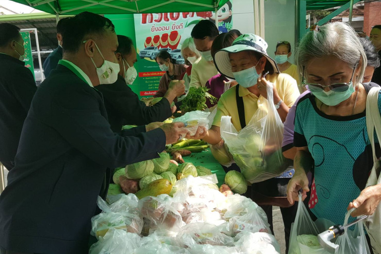 วันที่ 7 มิ.ย.64 ผู้สื่อข่าวรายงานว่าที่ หน้าสำนักงาน ธ.ก.ส. จังหวัดเชียงใหม่ นายสุรพล อินทนนท์ นายกสมาคมฌาปนกิจสงเคราะห์ของผู้ฝากเงิน ธ.ก.ส. สาขาเชียงใหม่ พร้อมด้วย นายมาโนช บังองค์ ผู้อำนวยการฝ่ายกิจการ ธกส.ภาคเหนือตอนบน.นายสนอง ชัยชนะ ผู้อำนวยการสำนักงาน ธกส.จังหวัดเชียงใหม่ นายกลศาสตร์ เรืองแสน ผช.ผอ.สำนักงาน ธกส.จังหวัดเชียงใหม่ นางศิวพร ปิยะวงศ์ไพบูลย์ ผจก.ธกส.สาขาจังหวัดเชียงใหม่นายนิรันดร์ พิสิฐเสนีย์ ผช.ผจก.ธกส.สาขาเชียงใหม่ ร่วมกันนำสินค้าเกษตรกรมาแจกจ่ายให้เกษตรกรและชาวบ้านทั่วไป
