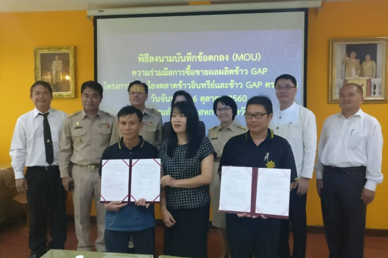 นายสมชัย ใจกว้าง สหกรณ์จังหวัดเชียงราย กล่าวว่า การลงนามบันทึกข้อตกลงความร่วมมือ (MOU) การซื้อขายผลผลิตข้าว มาตรฐาน GAP ในครั้งนี้ เป็นการลงนามระหว่าง ผู้ซื้อคือ สหกรณ์การเกษตรเชียงแสน จำกัด กับกลุ่มเกษตรกรนาแปลงใหญ่ จำนวน 2 แปลง ได้แก่ 1. กลุ่มเกษตรกรผู้ปลูกข้าวคุณภาพบ้านป่าบงงาม หมู่ 6 ต.บ้านด้าย อ.แม่สาย พื้นที่ 93 ไร่ ประมาณการผลผลิต 64 ตัน และ2. กลุ่มรักถิ่นเกิดเกษตรทฤษฎีใหม่ หมู่ 4 ต.บ้านด้าย อ.แม่สาย พื้นที่ 56 ไร่ ประมาณการผลิต 34.5 ตัน การรับซื้อข้าว สหกรณ์การเกษตรเกษตรเชียงแสน จำกัด จะต้องรับซื้อข้าวคุณภาพมาตรฐาน GAP นาแปลงใหญ่ จากกลุ่มเกษตรกร ในราคาสูงกว่าราคาตลาด ประมาณ 300-500 บาทต่อตัน ในส่วนของสหกรณ์ที่เข้าร่วมโครงการ จะได้รับสิทธิพิเศษในการขอรับการสนับสนุนเงินกู้ดอกเบี้ยต่ำ จากธนาคารที่เข้าร่วมโครงการ โดยรัฐบาลจะชดเชยดอกเบี้ยให้ร้อยละ 3 ต่อปี ในการดำเนินโครงการนี้ กรมการข้าว ได้มีการรับสมัครผู้ประกอบการที่เข้าร่วมโครงการมีจำนวน 4 ราย ได้ผ่านการตรวจสอบและเห็นชอบจากกรมการข้าวในรอบแรก และได้ทำ MOU ไปก่อนแล้ว จำนวน 2 ราย เมื่อวันที่ 21 กันยายน 2560