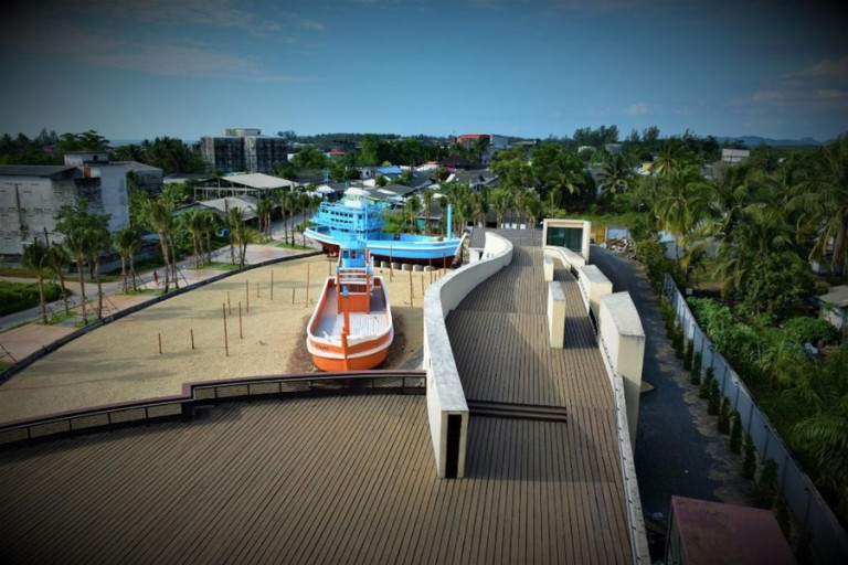 1.ส่วนจัดแสดงภายนอกอาคาร จัดแสดงเรือประมง 2 ลำ ที่ถูกคลื่นยักษ์สึนามิพัดพาเข้ามาจากชายฝั่งเหลือร่องรอยยังคงเป็นวัตถุพยานที่สำคัญของเหตุการณ์ในครั้งนั้น