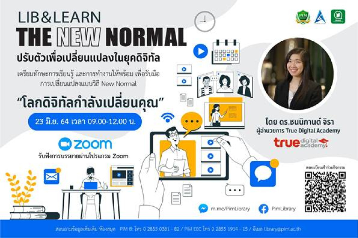 สถาบันการจัดการปัญญาภิวัฒน์ (พีไอเอ็ม) ขอเชิญร่วมอบรมออนไลน์งาน LIB & LEARN THE NEW NORMAL ปรับตัวเพื่อเปลี่ยนแปลง ในวันพุธที่ 23 มิถุนายน 2564 เวลา 09.00 - 12.00 น.
