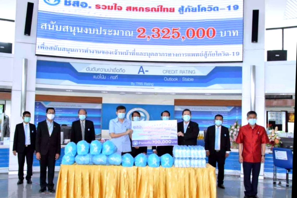 พลตำรวจโท วิโรจน์ สัตยสัณห์สกุล ประธานกรรมการชุมนุมสหกรณ์ออมทรัพย์แห่งประเทศไทย จำกัด (ชสอ.) พร้อมด้วยว่าที่ร้อยตรี ดร.ชัยรักษ์ ดีปัญญา นายพิทยา ทิพยโสตถิ รองประธานกรรมการ ผศ.พิพัฒน์ วงศ์เกษม กรรมการและเลขานุการ นายวิทยา ประเทศ กรรมการดำเนินการ และดร.สมนึก บุญใหญ่ ผู้จัดการใหญ่ ร่วมมอบเงินสมทบทุน จำนวนเงินรวม 700,000 บาท ให้กับสำนักงานสาธารณสุขจังหวัดนนทบุรี และโรงพยาบาลในจังหวัดนนทบุรี จำนวน 11 แห่ง ได้แก่ โรงพยาบาลไทรน้อย โรงพยาบาลบางใหญ่ โรงพยาบาลปากเกร็ด โรงพยาบาลบางกรวย1 โรงพยาบาลบางกรวย2 โรงพยาบาลบางบัวทอง1 โรงพยาบาลบางบัวทอง 2 โรงพยาบาลพระนั่งเกล้า สถาบันทรวงอก สถาบันบำราศนราดูร โรงพยาบาลสนามโรงเรียนนนทบุรีวิทยา โดยมี นพ.รุ่งฤทัย มวลประสิทธิ์พร นายแพทย์สาธารณสุขจังหวัดนนทบุรี เป็นผู้แทนรับมอบ พร้อมด้วย คุณรังสรรค์ ถามูลแสน ผู้แทนจากสถาบันบำราศนราดูร นายชัยวุฒิ มัณฑะนานนท์ สหกรณ์จังหวัดนนทบุรี ณ สำนักงาน ชสอ.จังหวัดนนทบุรี