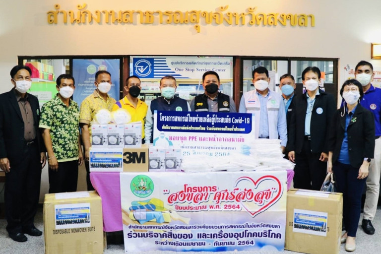 เมื่อวันที่ 25 ส.ค. นายนอรดีน เจะแล สหกรณ์จังหวัดสงขลา พร้อมด้วยผู้แทนสันนิบาตสหกรณ์จังหวัดสงขลา ประธานชุมนุมสหกรณ์การเกษตรสงขลา จำกัด และผู้แทนสหกรณ์ในจังหวัดสงขลา ร่วมมอบชุด PPE สำหรับบุคลากรทางการแพทย์ จำนวน 100 ชุด หน้ากากอนามัย N95 จำนวน 400 ชิ้นและเงินสด จำนวน 30 000 บาท ให้แก่นายอุทิศศักดิ์ หริรัตนกุล นายแพทย์สาธารณสุขจังหวัดสงขลา ผู้รับมอบเพื่อให้แก่บุคลากรด้านหน้าใช้ในการป้องกันตัวเอง จากการแพร่ระบาดของไวรัสโคโรน่า (โควิด 19)ภายใต้โครงการ "สงขลา ศุกร์ส่งสุข"