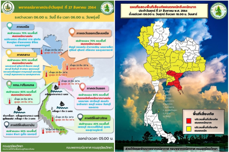 กอ.ปภ.อยุธยา แจ้งเตือน ข้อมูลสภาวะอากาศประเทศไทย ประจำวันที่ 27 ส.ค. จะมีฝนเพิ่มขึ้นและมีฝนตกหนักบางพื้นที่ ขอให้ประชาชนในพื้นที่ติดตามข้อมูลจากทางราชการและเฝ้าระวังอันตรายจากฝนฟ้าคะนอง ลมกระโชกแรง หลีกเลี่ยงการอยู่ในที่โล่งแจ้ง และแจ้งเหตุที่สายด่วน 1784