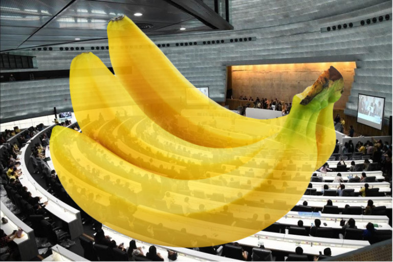 อิทธิพลของกล้วยในละตินอเมริกา ในแอฟริกา แม้จะสร้างความเจริญเติบโตทางเศรษฐกิจ แต่อีกด้านสร้างทั้งปัญหาความขัดแย้ง เอารัดเอาเปรียบ และจ่ายสินบน บางครั้งมีการบริหารจัดการเพื่อประโยชน์สาธารณะ บางครั้งก็เพียงเพื่อแสวงหากำไร ซึ่งไม่แตกต่างกับกล้วยที่กล่าวกันว่าบางฝ่ายแจกในสภาผู้แทนบ้านเรา เพราะเสพติดพฤติกรรมเจ้าเล่ห์มัวเมาอำนาจและผลประโยชน์จนถอนตัวไม่ขึ้น กล้วยจากอาหารอันโอชาถูกด้อยค่าเป็นเพียงสินบนแลกเปลี่ยนตอบแทนการสนับสนุนทางการเมือง สังคมไทยเมื่อพูดถึงกล้วยก็คือสินบน จะยกหวียกเครือก็แล้วแต่ความสำคัญของเรื่องที่แลกเปลี่ยน กล้วยกับสินบนกลายเป็นสิ่งเดียวกัน....