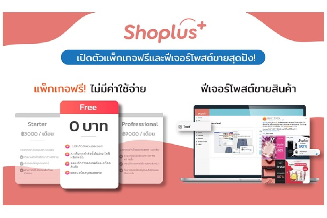 Shoplus ผู้นำด้านการให้บริการเทคโนโลยี AI อัจฉริยะ และโซลูชั่นด้านโซเชียลคอมเมิร์ซแบบครบวงจรในประเทศไทยและทั่วเอเชียตะวันออกเฉียงใต้ เปิดตัวแพ็คเกจ ‘Free’ พร้อมฟีเจอร์ส่งเสริมการขายใหม่ที่ช่วยให้ร้านค้าสามารถขายสินค้าหลายรายการพร้อมกันในเฟซบุ๊กโพสต์ ผ่านระบบ AI ได้ เพื่อช่วยเหลือและส่งเสริมการขายให้แก่ผู้ประกอบการร้านค้าออนไลน์ในประเทศไทยที่มีจำนวนเพิ่มขึ้นอย่างต่อเนื่อง โดย แพ็คเกจ ‘Free’ มาพร้อมกับ Shoplus AI Chatbot ระบบตรวจจับความต้องการซื้อของลูกค้าจากคอมเม้นต์ใต้โพสต์สินค้าบนหน้าเพจเฟซบุ๊กของร้านค้า โดยเป็นแพ็คเกจพิเศษที่ Shoplus ต้องการสนับสนุนร้านค้าอิสระและธุรกิจขนาดเล็กที่หันมาขายสินค้าบนช่องทางออนไลน์เพื่อเพิ่มยอดขายในช่วงการแพร่ระบาดของโรคโควิด-19