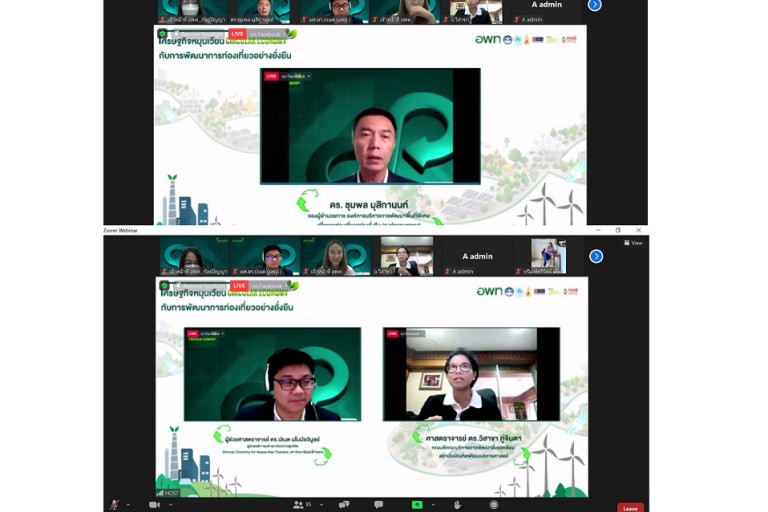 ขณะที่ ศ.ดร. วิสาขา ภู่จินดา คณบดีคณะบริหารการพัฒนาสิ่งแวดล้อม สถาบันบัณฑิตพัฒนบริหารศาสตร์ หรือ NIDA และผู้ช่วยศาสตราจารย์ ดร.ปเนต มโนมัยวิบูลย์ หัวหน้าศูนย์วิจัยระบบเศรษฐกิจหมุนเวียน เพื่อประเทศไทยปลอดขยะ (CEWT) สำนักวิชาวิทยาศาสตร์ มหาวิทยาลัยแม่ฟ้าหลวง ได้กล่าวในการประชุมครั้งนี้ว่า BCG Economy จะนำไปสู่การกำหนดแนวปฏิบัติใหม่ของอุตสาหกรรมการท่องเที่ยว ซึ่งถือเป็นอุตสาหกรรมที่มีความสำคัญต่อการพัฒนาเศรษฐกิจของประเทศ ที่ต้องการสร้างรายได้และกระจายรายได้จากการท่องเที่ยว ควบคู่ไปกับการเพิ่มประสิทธิภาพการใช้ทรัพยากรธรรมชาติและสิ่งแวดล้อมให้เกิดประโยชน์สูงสุด เช่น การจัดซื้อจัดจ้างสีเขียว การใช้ผลิตภัณฑ์หรือบรรจุภัณฑ์ ที่สามารถนำกลับมาใช้ซ้ำ หรือนำกลับมาเข้าสู่กระบวนการรีไซเคิล (Re-Cycle) รวมถึงการนำขยะไปผลิตพลังงานทดแทน (Waste to Energy) ควบคู่ไปกับการส่งเสริมชุมชนให้เกิดการพัฒนาผลิตภัณฑ์จากขยะหรือที่เรียกว่า Re-Cycling เพื่อเป็นกิจกรรมหนึ่งที่สามารถเข้ามาช่วยกระจายรายได้เข้าสู่ชุมชนได้มากยิ่งขึ้น เกิดการยกระดับการบริหารจัดการแหล่งท่องเที่ยวให้เกิดความยั่งยืน ตามหลักการทำน้อยแต่ได้มาก