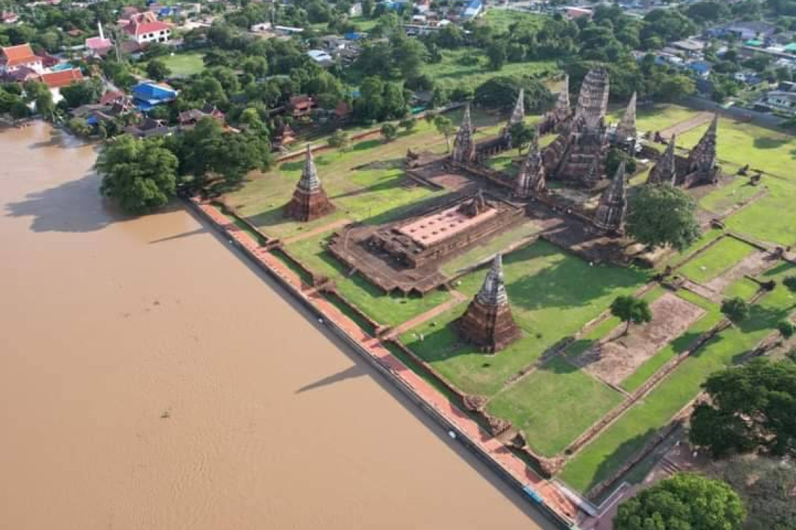 ๓.โบราณสถานวัดไชยวัฒนาราม ระดับน้ำในแม่น้ำเจ้าพระยามีระดับสูงกว่าสันเขื่อน ๕๐ เซนติเมตร โดยอุทยานฯ ได้ติดตั้งแผงป้องกันน้ำเสร็จเรียบร้อยแล้ว และในวันนี้ได้ติดตั้งเครื่องสูบน้ำพลังงานดีเซล เสริมสำรองไว้กรณีเกิดฝนตกหนัก น้ำรั่วซึมมาก ไฟฟ้าดับหรือเครื่องสูบน้ำไฟฟ้าเสียหาย (ได้รับการสนับสนุนเครื่องสูบน้ำจากสำนักงานป้องกันและบรรเทาสาธารณภัยจังหวัดพระนครศรีอยุธยา)