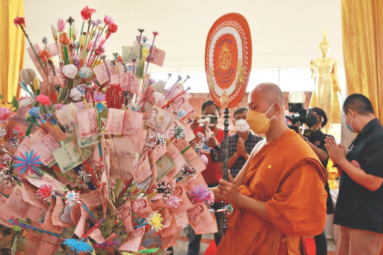 ถวายแด่ พระครูปลัดสมศักดิ์ ตาณรโต (พระอาจารย์ตุ้ม) เจ้าอาวาสวัดนาจอมเทียน เพื่อสมทบทุน ปฏิสังขรณ์บูรณะพระอุโบสถหลังเก่า-อุโบสถหลังใหม่ และศาลาราย ทำนุบำรุงพระพุทธศาสนาและถาวรวัตถุ จรรโลงพระพุทธศาสนา ให้ยั่งยืนต่อไป โดยผู้เข้าร่วมในพิธี ได้ปฏิบัติตามมาตรการป้องกันและควบคุมการแพร่ระบาดของเชื้อไวรัสโควิด 19 ตามที่กระทรวงสาธารณะสุข กำหนด อย่างเคร่งครัด