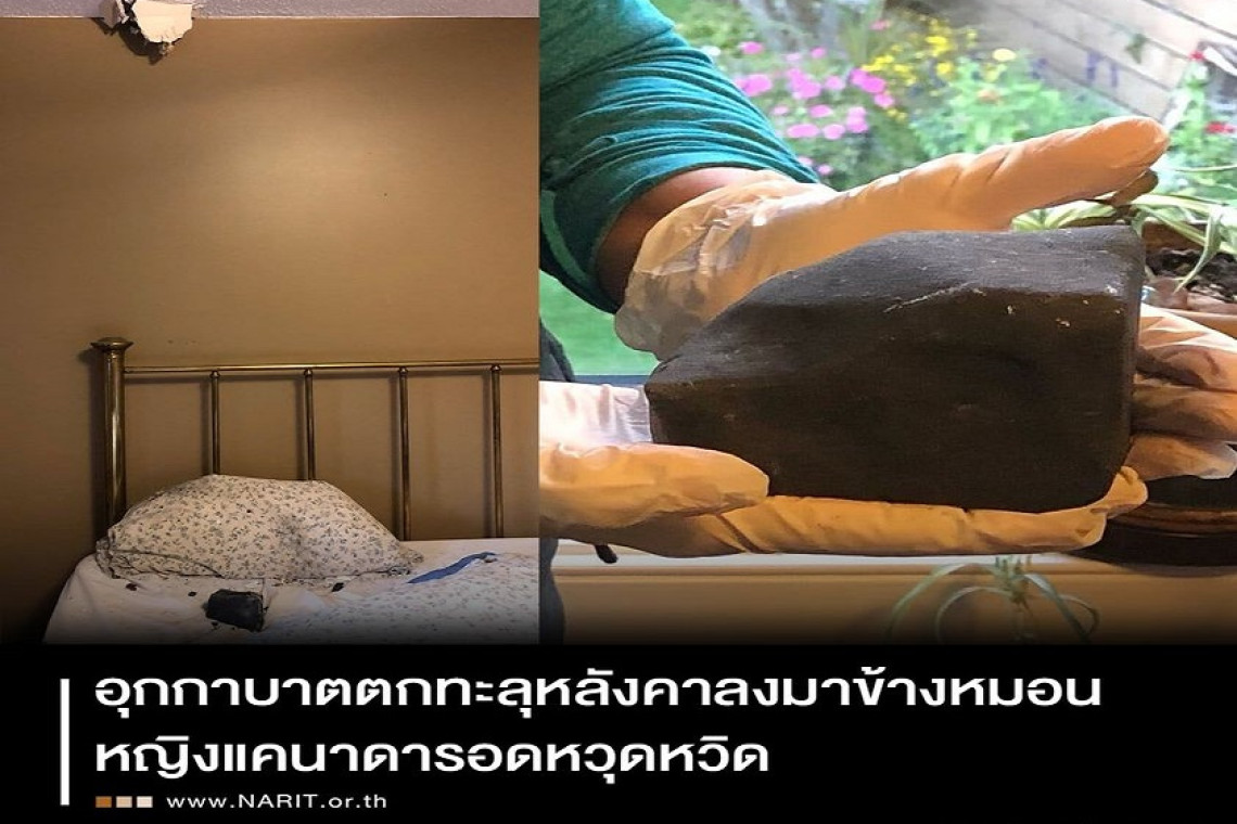 เพจ NARIT สถาบันวิจัยดาราศาสตร์แห่งชาติ โพสต์ผ่านเฟซบุ๊กระบุ "หญิงสาวชาวแคนาดาประสบเหตุอุกกาบาตตกใส่บ้านจนหลังคาทะลุ อีกทั้งยังตกลงข้างหมอนขณะที่เธอกำลังนอนหลับอยู่ แม้จะฟังดูน่าตกใจแต่เหตุการณ์แบบนี้ไม่ได้เกิดขึ้นบ่อยนัก ครั้งสุดท้ายที่เกิดขึ้นก็เมื่อเกือบ 70 ปีที่แล้ว