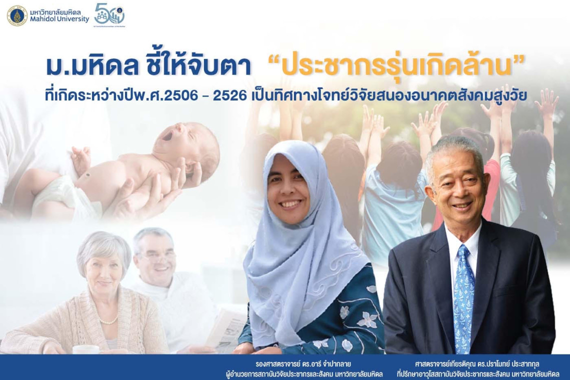 จึงเกิดคำถามว่า เราจะเตรียมพร้อมนโยบายทางประชากรของประเทศไทยให้สอดรับกับการเปลี่ยนแปลงโครงสร้างทางประชากรของไทยอย่างไร เมื่อ "ประชากรรุ่นเกิดล้าน" ที่เกิดระหว่างปีพ.ศ.2506 - 2526 จะกลายเป็น "สึนามิประชากร" ที่เคลื่อนสู่ "ฝั่งผู้สูงวัย" ในอีกไม่กี่ปีข้างหน้า