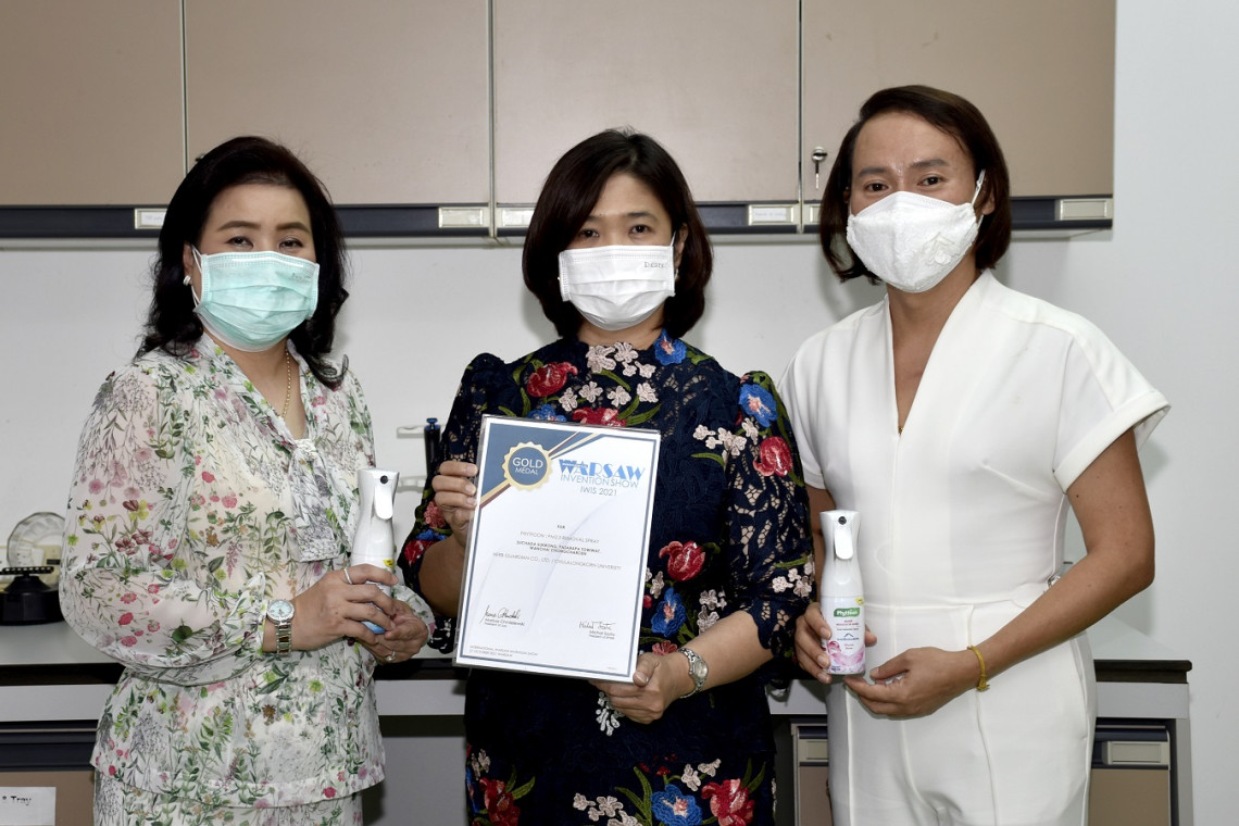 “PhytFoon” (ไฟท์ฝุ่น) ผลิตภัณฑ์สเปรย์ลดฝุ่น PM2.5 ผลงานวิจัยของอาจารย์คณะเภสัชศาสตร์ จุฬาฯ โดยบริษัท เฮิร์บ การ์เดียน จำกัด บริษัทสตาร์ทอัพภายใต้การบ่มเพาะของ CU Pharmacy Enterprise คณะเภสัชศาสตร์ จุฬาฯ และ CU Innovation Hub คว้ารางวัลเหรียญทองการประกวดนวัตกรรมระดับนานาชาติ “IWIS 2021” International Warsaw Invention Show 2021 ด้วยความโดดเด่นของนวัตกรรมจากงานวิจัยที่เป็นที่ยอมรับว่าสามารถลดปัญหาฝุ่น PM2.5 ได้จริง เพื่อสุขภาพของประชาชน