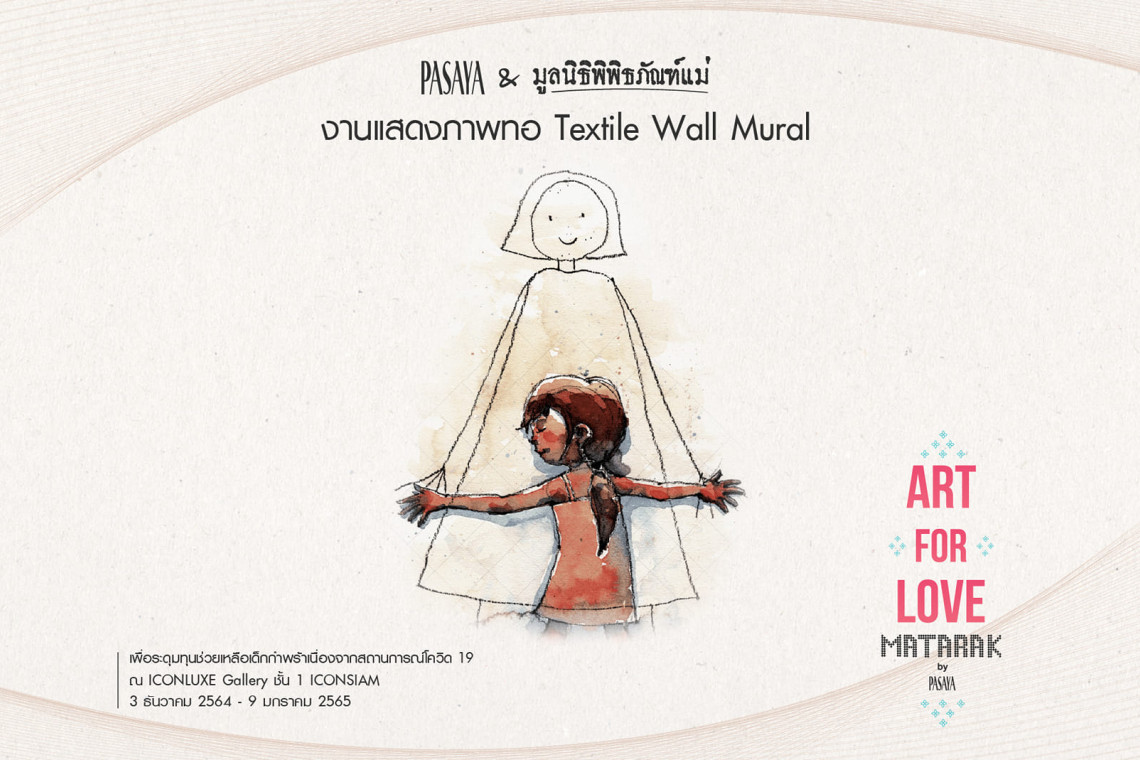 หลังประสบความสำเร็จจากกิจกรรม ‘เล่น ศิลป์ กิน เที่ยว ปี 2’ ที่ทำให้การท่องเที่ยวจังหวัดราชบุรีคึกคักรับลมหนาวเมื่อปลายปีที่ผ่านมา ล่าสุด ‘PASAYA’ ร่วมกับ ‘มูลนิธิพิพิธภัณฑ์แม่’ เตรียมอวดผลงานศิลปะบนผืนผ้าทอขนาดใหญ่ในงาน Art for Love: มาตารักษ์ (MATARAK) นิทรรศการภาพทอด้วยรักจากแม่ เพื่อระดมทุนช่วยเหลือเด็ก เยาวชน และผู้ด้อยโอกาส ที่ต่างก็ได้รับผลกระทบจากการระบาดของ COVID-19 จัดแสดงตั้งแต่วันที่ 3 ธันวาคม 2564 ถึง 9 มกราคม 2565 ณ ศูนย์การค้าไอคอนสยาม (ICONSIAM) โซน ICONLUXE Gallery ชั้น 1
