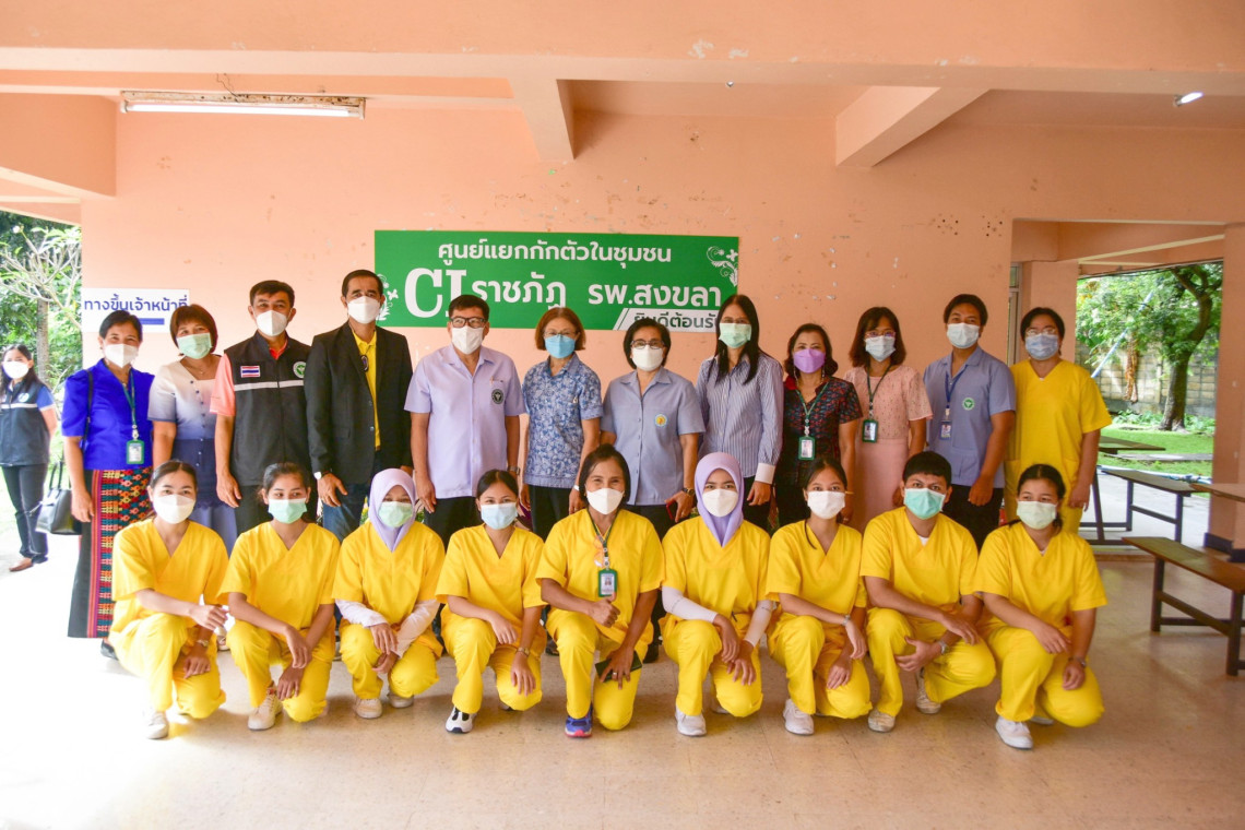 เมื่อวันที่ 26 พ.ย.64 อาจารย์พิเชษฐ์ จันทวี รักษาราชการแทนอธิการบดีมหาวิทยาลัยราชภัฏสงขลา (มรภ.สงขลา) พร้อมด้วย อาจารย์จิรภา คงเขียว รองอธิการบดีฝ่ายพัฒนานักศึกษา และ นายแพทย์พงษ์พจน์ ธีรานันตชัย ผู้อำนวยการโรงพยาบาลสงขลา นำบุคลากรของทั้งสององค์กร ร่วมพิธีเปิดศูนย์แยกกักตัวในชุมชน (Community Isolation) รองรับผู้ป่วยโรคโควิด-19 ในจังหวัดสงขลา ที่มีผลตรวจยืนยันการติดเชื้อแต่ไม่ปรากฏอาการ และได้รับอนุญาตหรือความเห็นชอบจากแพทย์ให้ย้ายเข้ามารักษาตัวต่อที่ศูนย์แยกกักตัวในชุมชน เพื่อช่วยแบ่งเบาภาระให้กับโรงพยาบาลสงขลา