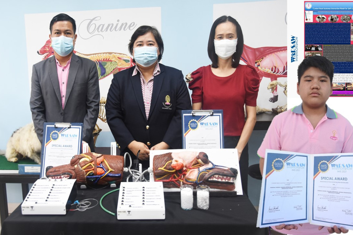 นวัตกรรม “หุ่นจำลองปฏิสัมพันธ์กายวิภาคหัวสุนัขเพื่อการเรียนรู้ด้วยตัวเอง” (Canine Head Anatomy Interaction Model for Self-Learning) ผลงานของ ผศ.สพ.ญ.ดร.ภาวนา เชื้อศิริ ภาควิชากายวิภาคศาสตร์ คณะสัตวแพทยศาสตร์ จุฬาฯ คว้ารางวัล Special Award และเหรียญทองในงาน International Warsaw Inventions show (IWIS) 2021 ที่ประเทศโปแลนด์ ซึ่งเป็นการประกวดนวัตกรรมระดับนานาชาติที่ใหญ่ที่สุดของยุโรป ซึ่งปีนี้จัดในรูปแบบออนไลน์ มีผลงานส่งเข้าประกวดถึง 400 รายการ