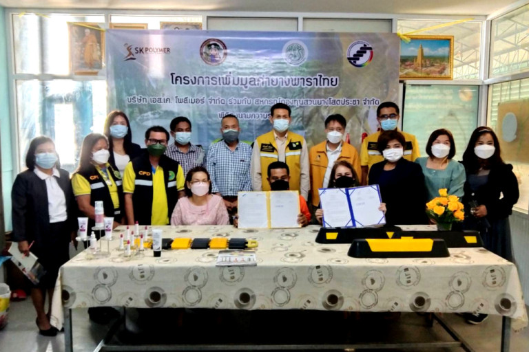 ในการนี้ บริษัทเอส เค โพลีเมอร์ จำกัด โดยคุณสุพจน์ สุวรรณพิมลกุล กรรมการผู้จัดการ ได้ลงนามในบันทึกข้อตกลง กับ สหกรณ์กองทุนสวนยางโสตประชา จำกัด โดยนายวิสูตร สุชาฎา ประธานกรรมการสหกรณ์ฯ โดยมีวัตถุประสงค์ ที่จะดำเนินงานร่วมกันเพื่อส่งเสริมให้สหกรณ์ฯ มีเพิ่มขีดความสามารถประสิทธิภาพการผลิต พัฒนาบุคลากรของสหกรณ์ ให้อยู่ในระดับอุตสาหกรรม และเป็นสหกรณ์ที่เผลิตสินค้าเกี่ยวกับยางธรรมชาติให้กับบริษัทฯ โดยมีกิจกรรม ความร่วมมือ ในการให้ความรู้ ถ่ายทอดเทคโนโลยีการผลิตที่ได้รับจากบริษัท การออกแบบผลิตภัณฑ์ แม่พิมพ์สินค้า เพื่อสามารถขยายผลไปสู่การผลิตเพื่อการพาณิชย์ โดยมีการจัดสรรผลประโยชน์อย่างเสมอภาคและเป็นธรรรม