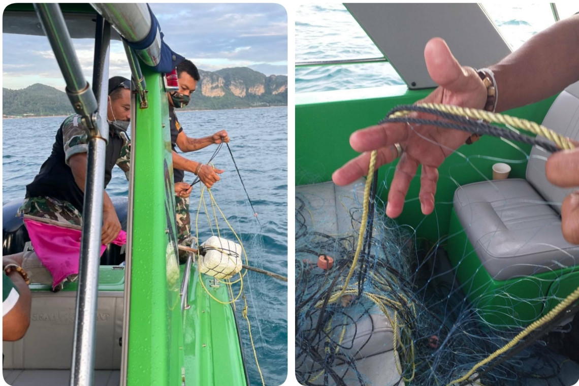 นายปราโมทย์ แก้วนาม หัวหน้าอุทยานแห่งชาติ หาดนพรัตน์ธารา-หมู่เกาะพีพี จ.กระบี่ กล่าวว่า ตนได้นำกำลังเจ้าหน้าที่เข้าทำการกู้ซากอวนของชาวประมงที่ติดอยู่ตามแนวปะการัง เหตุเกิดบริเวณ เกาะสี่ เกาะห้าในเขตอุทยานแห่งชาติหาดนพรัตน์ธารา-หมู่เกาะพีพี กลุ่มเกาะปอดะ หมู่ที่ 2 ต.อ่าวนาง อำเภอเมือง จ .กระบี่ หลังจากที่นักดำน้ำได้ดำน้ำลงไปพบซากอวนขาดคลุมแนวปะการัง จำนวนมาก
