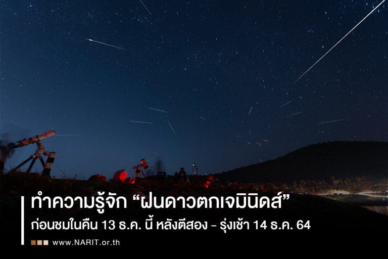 NARIT สถาบันวิจัยดาราศาสตร์ โพสต์ผ่านเฟซบุ๊กระบุ ก่อนชม #ฝนดาวตกเจมินิดส์ หลังเที่ยงคืน 13 ธ.ค นี้ ประมาณตีสอง ถึงรุ่งเช้าของวันที่ 14 ธ.ค.