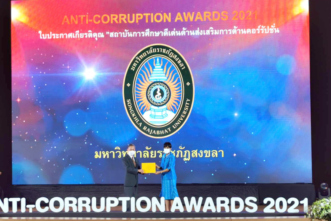 มรภ.สงขลา สุดปลื้ม คว้ารางวัลสถาบันการศึกษาดีเด่น ด้านส่งเสริมการต้านคอร์รัปชั่น ประจำปี 2564 “ANTI-CORRUPTION AWARDS 2021” อธิการฯ เป็นตัวแทนรับใบประกาศเกียรติคุณจาก ฯพณฯ ชวน หลีกภัย