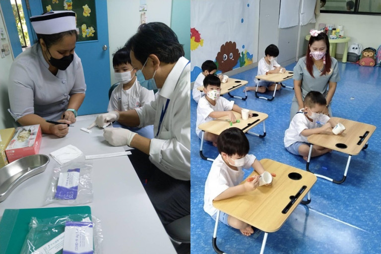 รองศาสตราจารย์ นายแพทย์อดิศักดิ์ ผลิตผลการพิมพ์ ผู้อำนวยการสถาบันแห่งชาติเพื่อการพัฒนาเด็กและครอบครัว มหาวิทยาลัยมหิดล กล่าวว่า ตั้งแต่เปิดภาคเรียนที่ผ่านมา ทางสถาบันฯ ได้มอบชุดตรวจ ATK ให้แก่ผู้ปกครองเพื่อคัดกรองเชื้อไวรัส COVID-19 ให้กับบุตรหลานด้วยตัวเอง ในทุกวันศุกร์ เพื่อให้กลับไปใช้ตรวจที่บ้านในวันอาทิตย์ และแจ้งผลการตรวจในวันจันทร์ที่เด็กมาเรียน เพื่อการเตรียมพร้อมเด็กให้สามารถ "อยู่ร่วม COVID-19" อย่างยั่งยืน และฝึกให้เด็กมีความรับผิดชอบต่อสังคมตั้งแต่ชั้นปฐมวัย เพื่อการเติบโตเป็นพลเมืองโลกที่มีคุณภาพต่อไปในอนาคต