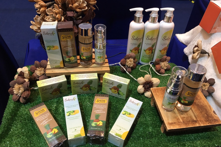 นางสาวสมคิด อุ่นแก้ว ผู้จัดการสหกรณ์การเกษตรสบปราบ จำกัด กล่าวว่า ในพื้นที่อำเภอสบปราบ มีการปลูกสับปะรดและมะนาวจำนวนมาก ซึ่งในช่วงที่ราคาตกต่ำทำให้มีสินค้าล้นตลาด จึงอยากแก้ปัญหาดังกล่าว โดยมีโอกาสเข้าร่วมคลัสเตอร์สมุนไพร และได้รับคำปรึกษาและข้อคำแนะนำจาก ผศ. ดร.กรวินท์วิชญ์ บุญพิสุทธินันท์ ซึ่งได้นำศาสตร์ทางการแพทย์แผนไทยมาประยุกต์ร่วมกับการวิจัยในห้องปฏิบัติการขั้นสูง เพื่อการพัฒนาสินค้าเกษตรของทางกลุ่ม โดยทำการสกัดสารสกัดจากมะนาวและสับปะรด และพัฒนาเป็นผลิตภัณฑ์เพื่อความงาม ประกอบด้วย เซรั่ม 30 มิลลิลิตร ราคา 250 บาท โทนเนอร์ ขนาด 100 มิลลิลิตร ราคา 250 บาท โลชั่น ขนาด 200 มิลลิลิตร ราคา 250 บาท และสบู่ ราคา 70 บาท วางจำหน่าย นอกจากเหนือจากสินค้าเกษตรของทางกลุ่ม เป็นการสร้างรายได้และช่วยระบายสินค้าให้เกษตรกรอีกช่องทางหนึ่ง