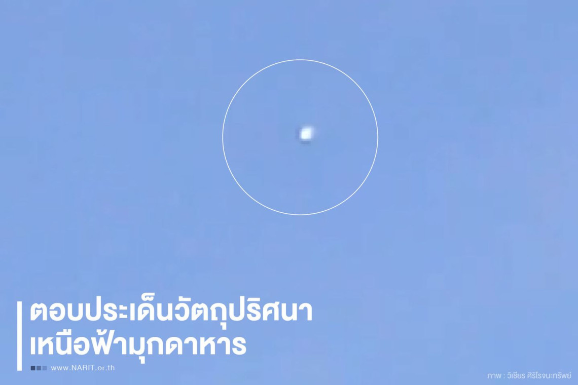 เพจ NARIT สถาบันวิจัยดาราศาสตร์แห่งชาติ โพสต์ผ่านเฟซบุ๊กระบุ "จากกรณีมีภาพเผยแพร่ทางโซเชียลมีเดีย เจอวัตถุปริศนาเปล่งแสงคล้ายดาวมองเห็นชัดในตอนกลางวัน ในพื้นที่แถบจังหวัดมุกดาหาร ช่วงเวลาประมาณ 4 โมงเย็น ของวันที่ 22 ธันวาคม 2564 ประชาชนพร้อมใจกันตั้งคำถาม และแสดงความคิดเห็นกันต่างๆ นานา