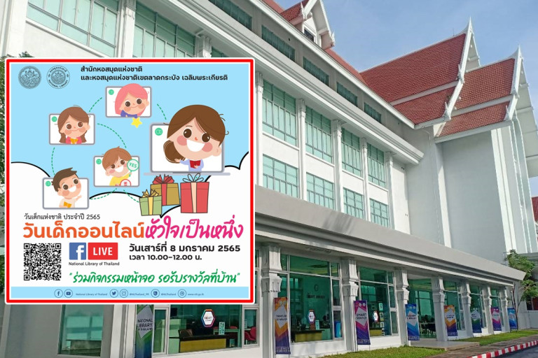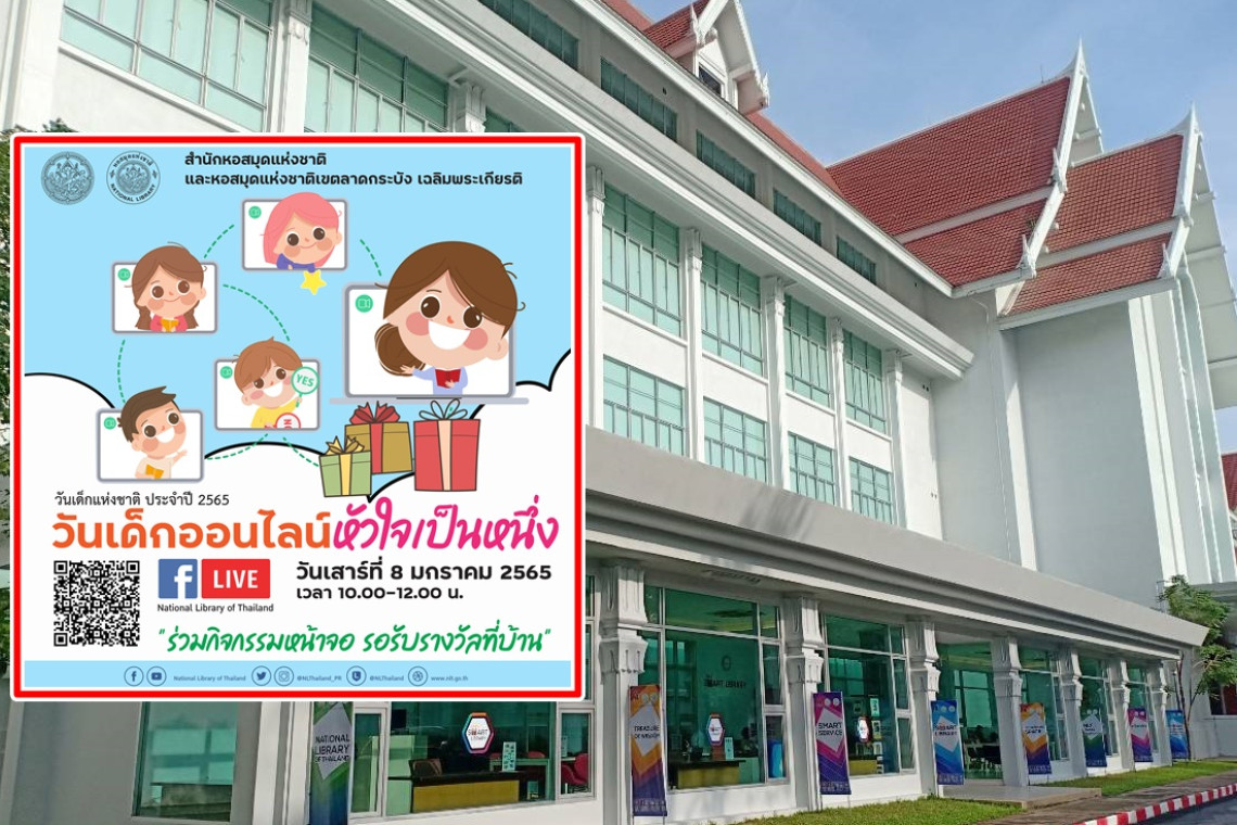 หอสมุดแห่งชาติ และหอสมุดแห่งชาติเขตลาดกระบัง เฉลิมพระเกียรติ จัดกิจกรรมวันเด็กแห่งชาติ ประจำปี 2565 ในรูปแบบออนไลน์ “วันเด็กออนไลน์หัวใจเป็นหนึ่ง”เพื่อป้องกันการแพร่ระบาดของโรคติดเชื้อ COVID-19