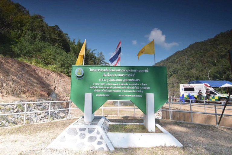เมื่อความทุกข์ร้อนของชาวบ้านถึงพระเนตรพระบาทสมเด็จพระบรมชนกาธิเบศร มหาภูมิพลอดุลยเดชมหาราช บรมนาถบพิตร จึงทรงรับไว้เป็นโครงการอันเนื่องมาจากพระราชดำริ เมื่อวันที่ 18 มิถุนายน 2557 และด้วยพระราชปณิธานพระบาทสมเด็จพระเจ้าอยู่หัว ที่จะทรงสืบสาน รักษา ต่อยอดโครงการของสมเด็จพระบรมชนกนาถ โครงการก่อสร้างอ่างเก็บน้ำห้วยป่ากล้วย หมู่ที่ 10 และโครงการก่อสร้างอ่างเก็บน้ำห้วยกอลุง หมู่ที่ 3 ต.ตะเคียนปม อ.ทุ่งหัวช้าง จ.ลำพูน จึงเกิดขึ้น โดยในปี 2561 สำนักงาน กปร.ได้สนับสนุนงบประมาณให้กรมชลประทาน ก่อสร้างอ่างเก็บน้ำตามความต้องการของราษฎร และก่อสร้างแล้วเสร็จเมื่อเดือนพฤศจิกายน 2563 ที่ผ่านมา จากนั้นเริ่มเก็บกักน้ำในช่วงฤดูฝนปี 2564 พร้อมปล่อยพันธุ์สัตว์น้ำจืดลงอ่าง นอกจากนี้ชาวบ้านยังได้รวมกันจัดตั้งกลุ่มผู้ใช้น้ำเพื่อสร้างการมีส่วนร่วมในการบริหารจัดการน้ำให้เกิดประโยชน์แก่ทุกคน