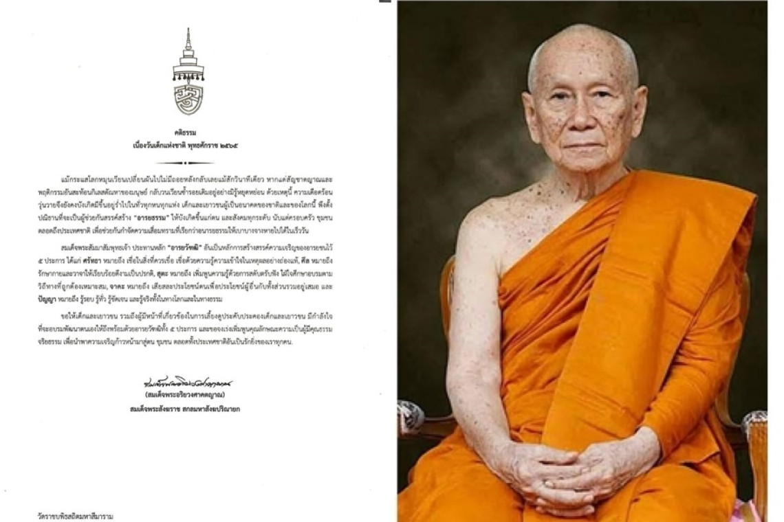 เมื่อวันที่ 6 ม.ค.65 สมเด็จพระอริยวงศาคตญาณ สมเด็จพระสังฆราช สกลมหาสังฆปริณายก ประทานพระคติธรรม เนื่องในวันเด็กแห่งชาติ พุทธศักราช 2565 ความว่า