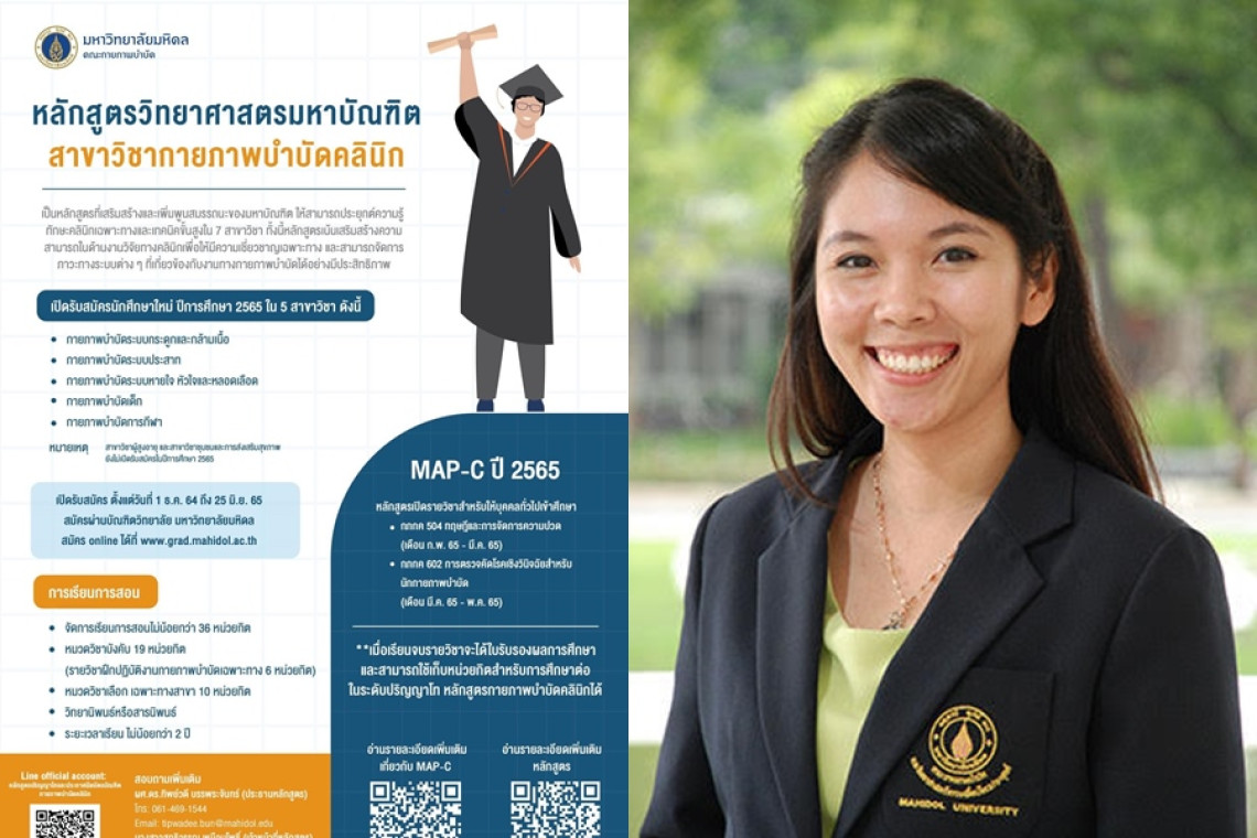 โดยเมื่อเร็วๆ นี้ ได้มีการเปิดให้นักกายภาพบำบัดวิชาชีพได้ Upskill - Reskill ลงทะเบียนเรียนออนไลน์ในรายวิชา"ทฤษฎีและการจัดการความปวด" เพื่อเสริมทักษะทางวิชาชีพ ในโครงการ MAP-C (Mahidol Apprenticeship Program Curriculum) สำหรับบุคคลทั่วไปของบัณฑิตวิทยาลัย มหาวิทยาลัยมหิดล ซึ่งผู้สำเร็จรายวิชาจากโครงการ MAP-C สามารถเทียบโอนหน่วยกิตเข้าศึกษาต่อในหลักสูตรวิทยาศาสตรมหาบัณฑิต และประกาศนียบัตรบัณฑิต สาขาวิชากายภาพบำบัดคลินิกของคณะกายภาพบำบัด มหาวิทยาลัยมหิดล ได้ทันที หรือจะเลือกช่องทางการศึกษาเพื่อเพิ่มพูนทักษะความรู้ในรูปแบบการอบรมวิชาการเชิงปฏิบัติการ ซึ่งไม่ต้องมีการสอบเก็บคะแนน ในวันเสาร์-อาทิตย์ โดยไม่ต้องลางานมาเข้ารับการฝึกปฏิบัติออนไลน์อีกด้วย นอกจากนี้ผู้เรียนจะได้ร่วมสัมมนาออนไลน์เพื่อฝึกแก้ปัญหาจัดการความปวดในรูปแบบต่างๆ ร่วมกับผู้เรียนในโครงการ MAP-C ซึ่งนักกายภาพบำบัดวิชาวิชาชีพที่สนใจสามารถสอบถามรายละเอียดการรับสมัครได้ที่https://liff.line.me/1645278921-kWRPP32q/?accountId=384rtrva