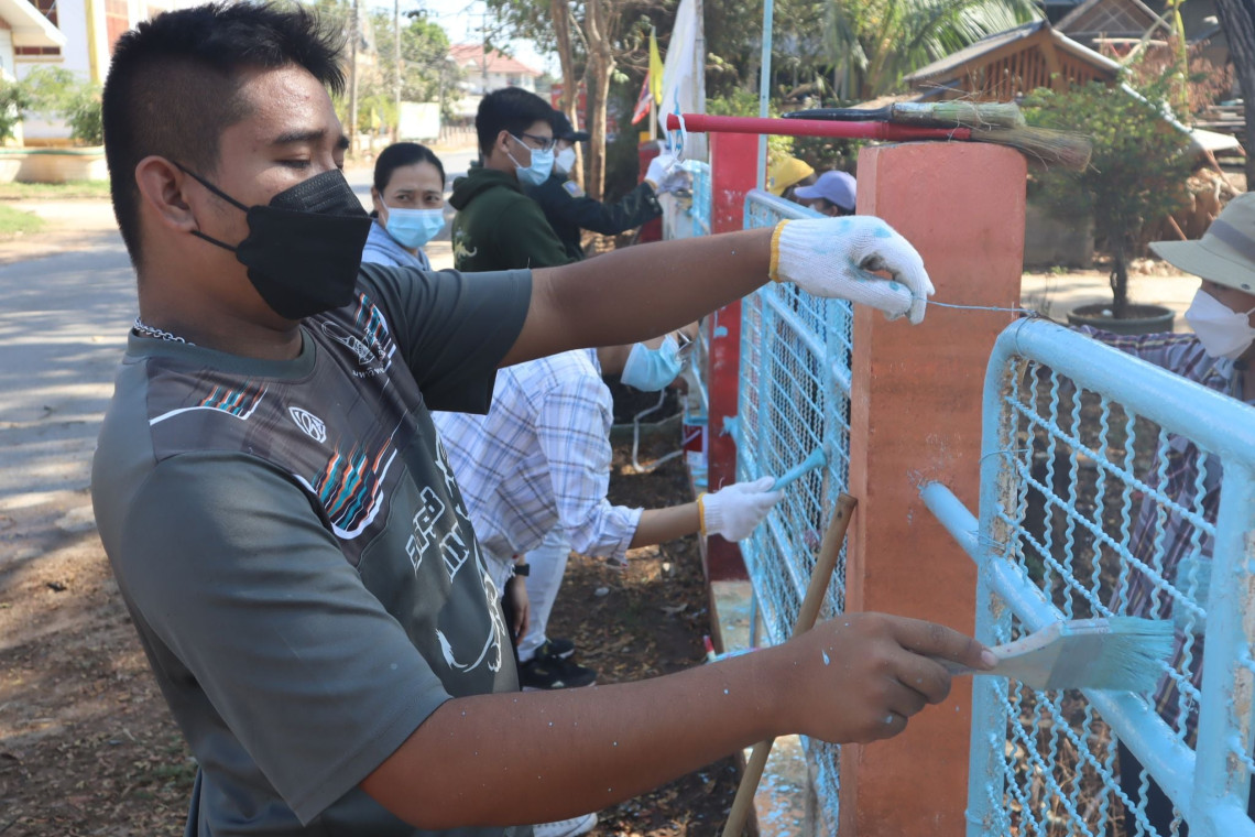 มหาวิทยาลัยมหาสารคาม โดยรองศาสตราจารย์ ดร.ประยุกต์ ศรีวิไล อธิการบดีมหาวิทยาลัยมหาสารคาม มอบหมาย ว่าที่ร้อยตรีอาทิตย์ อนุสรณ์ ปฏิบัติหน้าที่จิตอาสา 904 รหัส ก-387 มมส.อว. พร้อมด้วยบุคลากร และนิสิตจิตอาสา มหาวิทยาลัยมหาสารคาม 15 คน ลงพื้นที่ช่วยเหลือฟื้นฟูและปรับปรุงภูมิทัศน์หลังน้ำลด ร่วมกับนักเรียน และผู้ปกครองที่โรงเรียนบ้านดอนนาห้วยซัน (สพป.มค.1) บ้านดอนนา ตำบลขามเรียง อำเภอกันทรวิชัย จังหวัดมหาสารคาม (หลังจากที่ประสบอุทกภัยในช่วงเดือนตุลาคม 2564) โดยจิตอาสาได้ร่วมกันทาสีรั้วกำแพงโรงเรียน ปรับภูมิทัศน์ทำความสะอาด และปลูกไม้ดอกไม้ประดับ จัดสวนหย่อม ตกแต่งบริเวณด้านหน้าทางเข้าโรงเรียนที่ได้รับความเสียหายจากน้ำท่วม พร้อมได้เตรียมแผนเพื่อช่วยเหลือแก่วัดและโรงเรียนในเขตพื้นที่ตำบลขามเรียง ที่ประสบอุทกภัยเพื่อช่วยเหลือฟื้นฟูต่อไป