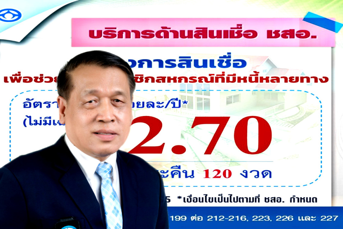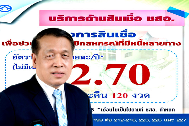 ชสอ. ออกโครงการช่วยเหลือสมาชิกสหกรณ์ที่มีหนี้หลายทาง เงินได้รายเดือนไม่พอหักชำระหนี้สหกรณ์ออมทรัพย์ หวังแบ่งเบาภาระ มีเงินเหลือพอเพียงดำรงชีพ จัดสรรวงเงินกู้ 500 ล้านบาท อัตราดอกเบี้ยร้อยละ 2.70 ต่อปี