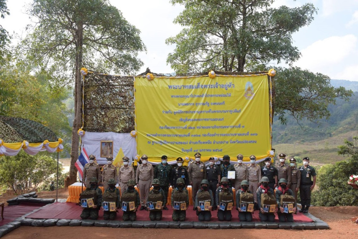 วันพุธที่ 19 มกราคม 2565 เวลา 09.45 น. นายพลากร สุวรรณรัฐ องคมนตรี ประธานอนุกรรมการติดตามและขับเคลื่อนโครงการอันเนื่องมาจากพระราชดำริในพื้นที่ภาคเหนือ พร้อมด้วยคณะอนุกรรมการฯ เชิญถุงพระราชทานจากพระบาทสมเด็จพระเจ้าอยู่หัว ไปมอบแก่เจ้าหน้าที่ผู้ปฏิบัติงานหน่วยงานความมั่นคง ณ ฐานปฏิบัติการปายสองแง่ ตำบลเวียงเหนือ อำเภอปาย จังหวัดแม่ฮ่องสอน รวม 80 ชุด ได้แก่ หน่วยเฉพาะกิจกรมทหารราบที่ 7 โดยกองร้อยทหารราบที่ 723 หมวดตำรวจตระเวนชายแดน 3361 กองร้อยตำรวจตระเวนชายแดนที่ 336 เพื่อเป็นขวัญกำลังใจในการปฏิบัติหน้าที่ป้องกันชายแดนรักษาความสงบเรียบร้อยให้แก่ประชาชน การนี้ องคมนตรีได้รับฟังสรุปสถานการณ์ด้านความมั่นคงในพื้นที่ และร่วมปลูกต้นไม้เพื่อเป็นร่มเงาให้แก่พื้นที่แห่งนี้