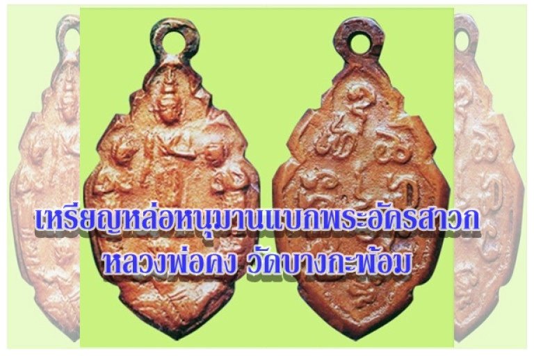 นอกจากนี้ ยังสามารถพิจารณาจากเนื้อหามวลสารของทั้ง 2 วัด ได้อีกประการหนึ่ง คือ กระแสเนื้อโลหะของวัดบางกะพ้อมจะออกไปทาง “เนื้อเหลือง” ส่วนของวัดแหวนหายจะออกไปทาง “เขียวเข้ม” แต่ไม่ว่าจะเป็นเหรียญหล่อหนุมานแบกพระอัครสาวก ของวัดไหนก็ตาม ก็ล้วนสร้างโดยหลวงพ่อคง ดังนั้น เหรียญทุกเหรียญจึงมีความเข้มขลัง ทรงพุทธคุณเป็นเลิศ และเป็นที่แสวงหากันอย่างกว้างขวางครับผม