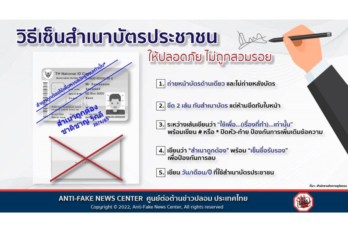 1.ถ่ายหน้าบัตรประชาชนเพียงด้านเดียว และไม่ถ่ายหลังบัตร