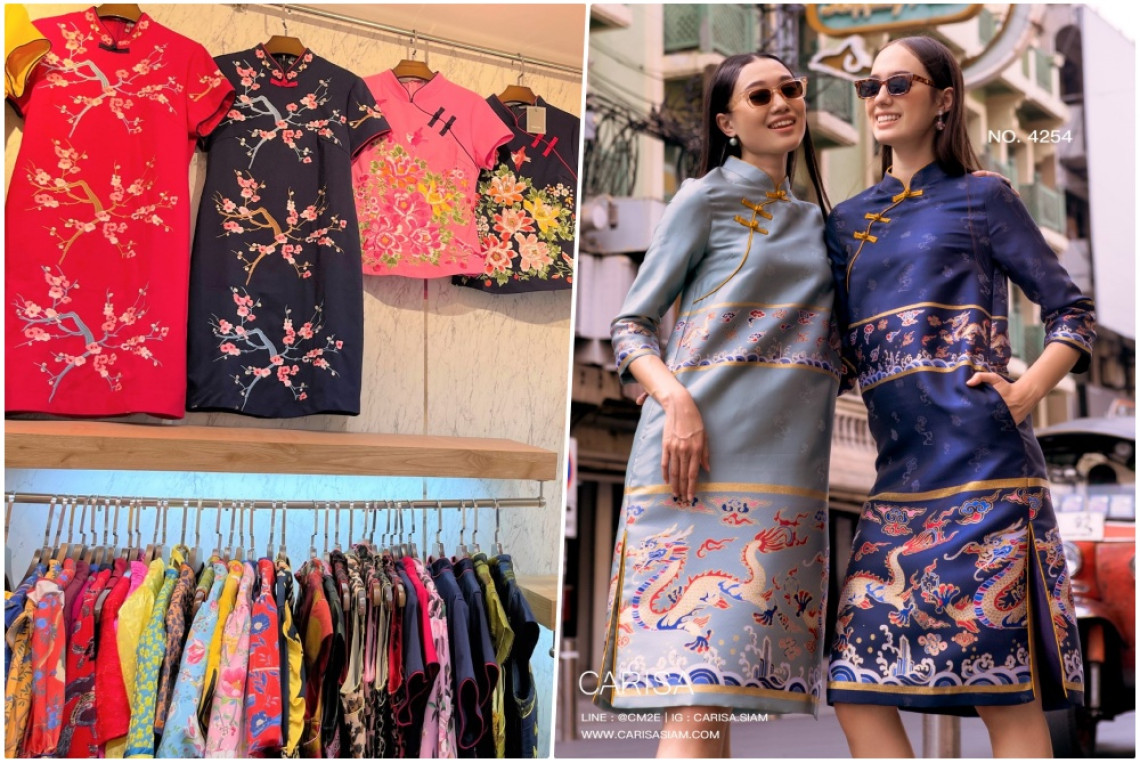 เริ่มที่ ร้าน CARISA พิกัดชั้น 1 ซอย SOHO11 กับชุดเสื้อผ้าในธีมจีน งานดีไซน์ระดับพรีเมี่ยม ที่ได้คัดสรรเนื้อผ้าอย่างดี เช่น ผ้าไหมจีนสกรีนลาย ผ้าปักลายแน่นๆ ผ้าทอลายในตัว ออกแบบตัดเย็บเป็นเดรสกี่เพ้า เสื้อคอจีน กางเกง กระโปรง หลากหลายดีไซน์หลายไซส์ มีให้เลือกสรร ให้คุณได้จับจองเป็นเจ้าของใส่ฉลองรับตรุษจีน เสริมเฮง