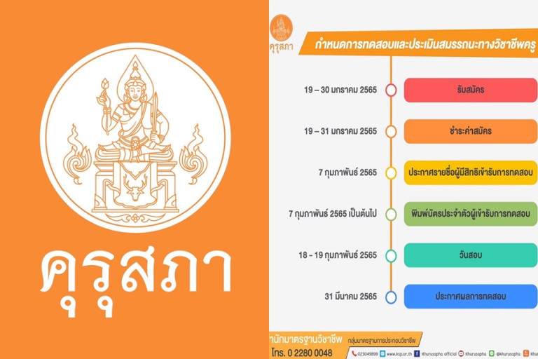 ส่วนกำหนดการประกาศรายชื่อผู้มีสิทธิ์สอบในวันที่ 7 ก.พ.65 ผู้มีสิทธิ์สอบสามารถพิมพ์บัตรประจำตัวผู้เข้าสอบผ่านระบบออนไลน์ของ สทศ. ได้ตั้งแต่วันที่ 7 ก.พ.65 เป็นต้นไป และเมื่อเข้ารับการทดสอบฯ ตามกำหนดการสอบแล้ว คุรุสภาจะประกาศผลสอบฯ ภายในวันที่ 31 มี.ค.65 เกณฑ์การผ่านการทดสอบฯ ผู้เข้ารับการทดสอบฯ ต้องมีผลคะแนนสอบฯ ในรายวิชาที่เข้าสอบไม่ต่ำกว่าร้อยละ 60 กรณีมีสอบไม่ผ่านเกณฑ์การทดสอบฯ ผู้เข้ารับการทดสอบ สามารถสมัครสอบในรายวิชาที่ไม่ผ่านเกณฑ์การทดสอบฯ นั้น ในการจัดการทดสอบครั้งต่อไป ทั้งนี้ รายวิชาที่สอบผ่านเกณฑ์การทดสอบฯ สามารถใช้ผลได้ไม่เกิน 3 ปี นับจากวันที่ประกาศผลการทดสอบฯ หากผลคะแนนการทดสอบรายวิชาใดเกินระยะเวลาที่กำหนดดังกล่าว ให้ถือว่าผลนั้นสิ้นสุด และต้องเข้ารับการทดสอบฯใหม่อีกครั้ง ทั้งนี้ กรณีไม่สามารถเข้าสู่ระบบรับสมัครสอบออนไลน์ของ สทศ. ได้ เนื่องจากเลขประจำตัวประชาชน หรือรหัสประจำตัวนิสิตนักศึกษาไม่ถูกต้อง ผู้สมัครต้องติดต่อสถาบันอุดมศึกษาของตนเองเพื่อแก้ไขข้อมูล และให้สถาบันอุดมศึกษาแจ้งแก้ไขข้อมูลดังกล่าว ต่อสำนักงานเลขาธิการคุรุสภา เพื่อแจ้ง สทศ. ต่อไป
