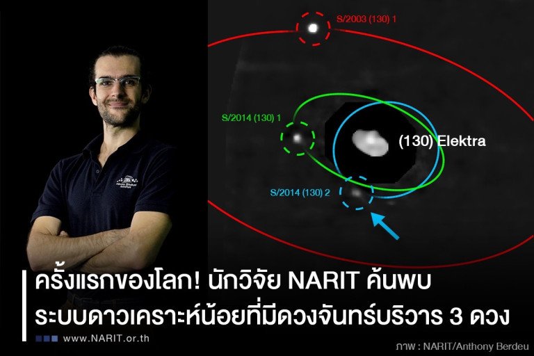 นักวิจัย NARIT ค้นพบดวงจันทร์ดวงที่สามของระบบดาวเคราะห์น้อย 130 Elektra ในแถบดาวเคราะห์น้อย นับเป็นการค้นพบระบบดาวเคราะห์น้อยที่มีดวงจันทร์บริวารถึง 3 ดวง (quadruple asteroid system) เป็นครั้งแรกของโลก