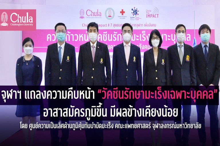 จากการเสวนาวิชาการ Chula the Impact ครั้งที่ 7 เรื่อง “ความก้าวหน้าวัคซีนรักษามะเร็งเฉพาะรายบุคคล นวัตกรรมแห่งความหวังของสังคมไทย” ซึ่งจุฬาลงกรณ์มหาวิทยาลัยและคณะแพทยศาสตร์ จุฬาลงกรณ์มหาวิทยาลัยจัดขึ้น เพื่อนำเสนอความคืบหน้าล่าสุดของนวัตกรรมการรักษาโรคมะเร็งด้วยวัคซีน โดยศูนย์ความเป็นเลิศด้านภูมิคุ้มกันบำบัดมะเร็ง คณะแพทยศาสตร์ จุฬาลงกรณ์มหาวิทยาลัย และโรงพยาบาลจุฬาลงกรณ์ สภากาชาดไทย เมื่อวันที่ 10 ก.พ.ที่ผ่านมา