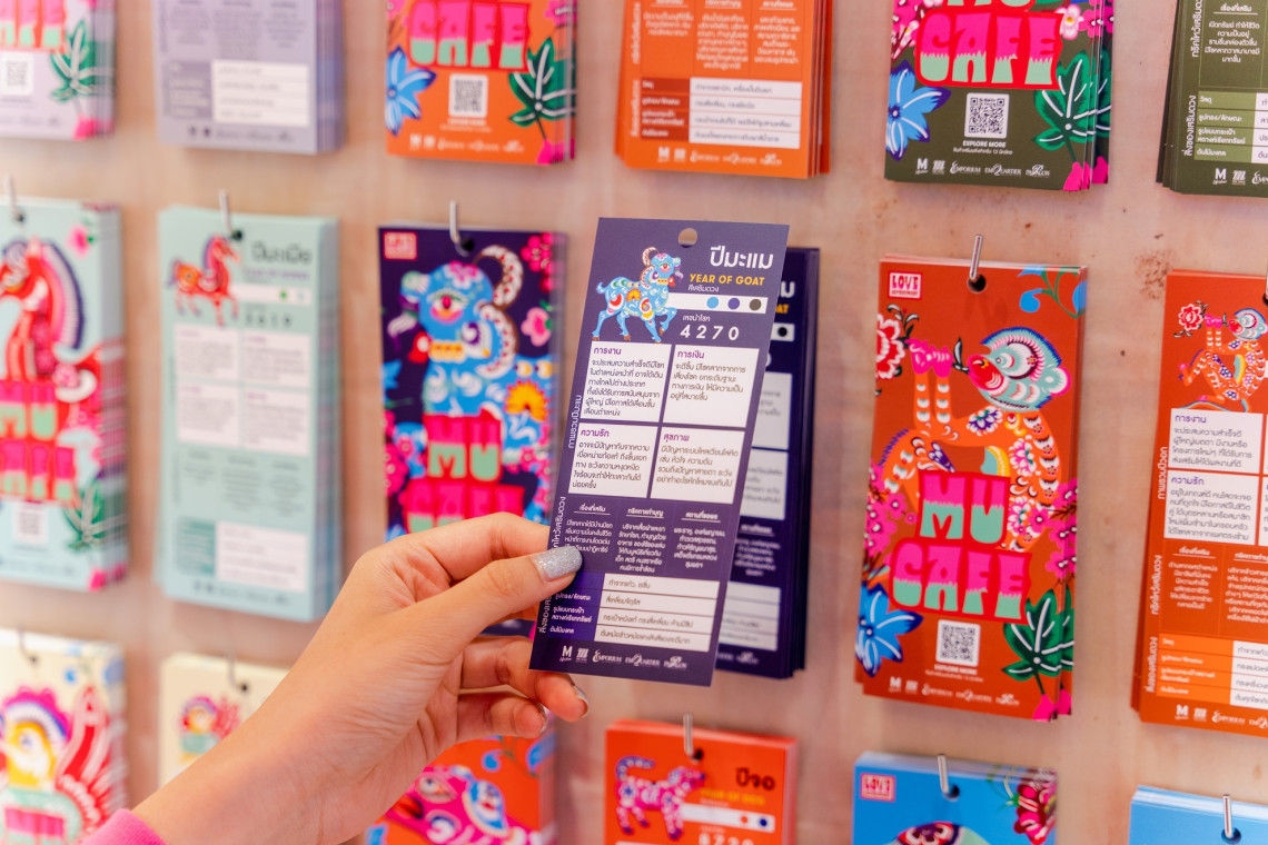 พิเศษพบกับไฮไลท์ ป๊อปอัพคอนเซ็ปสโตร์ “ MU CAFÉ – มูคาเฟ่ ” กับการร่วมสร้างสรรค์สุดเอ็กซ์คลูซีฟ ของเดอะมอลล์ กรุ๊ป และคุณศรัณย์ เย็นปัญญา ศิลปินนักออกแบบชื่อดัง ผู้ก่อตั้ง 56TH STUDIO & CITIZEN OF NOWHERE รังสรรค์ประสบการณ์มูเตลูรูปแบบใหม่ใจกลางห้างฯ พารากอน ดีพาร์ทเม้นท์สโตร์ ชั้น M บริเวณ MAIN HALL 2 ภายในพื้นที่พบกับไฮไลท์ ‘MU CONCIERGE’ พร้อมต้อนรับทุกคนมาเสริมพลังแห่งความเฮงทั้ง 12 นักษัตร กับทริคเสริมพลังประจำปีนี้ไม่ว่าจะเป็นทั้งความรัก การงาน และสุขภาพ พร้อม รับฟรี! MU WALLPAPER วอลล์เปเปอร์มือถือเสริมดวง 12 นักษัตรให้เฮงๆรับปีขาลทอง ‘MU CAFÉ X CITIZEN OF NOWHERE’ คาเฟ่ชาสุดชิคมาพร้อมเอ็กคลูซีฟ มูไอเทม ดีไซน์พิเศษเฉพาะงานนี้ อาทิ เซ็ทแก้วน้ำมงคล ตะกร้าเครื่องพวงมูเตลู ผ้าห่อของขวัญลายยันต์ และเมนูชามูเตลู รวมทั้งสินค้าแฟชั่นนำโชค และสินค้าไลฟ์สไตล์เสริมดวงจากแบรนด์ชั้นนำอีกมากมาย ‘FORTUNE TIGER’ 1 คำถาม ให้ขาลตอบ ตอบคำถามคาใจโดยหมอดูชื่อดัง- แก้วตา เม้าท์ดวงแชมป์ศึกชิงจ้าวหมอดูปี 2018 บริการพยากรณ์ดวงเสริมความปังตลอดปีขาลทอง พิเศษสำหรับลูกค้าห้างฯ พารากอน ที่ช้อปครบ 2,000 บาท ในวันศุกร์-เสาร์-อาทิตย์
