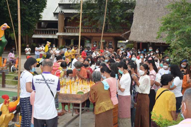 วันที่ 16 ก.พ. 2565 ที่วัดไพรพัฒนา ต.ไพรพัฒนา อ.ภูสิงห์ จ.ศรีสะเกษ พระครูโกศลสิกขกิจ หรือหลวงพ่อพุฒ วายาโม ประธานมูลนิธิหลวงปู่สรวง เจ้าคณะ อ.ภูสิงห์ (ธ) และเจ้าอาวาสวัดไพรพัฒนา ได้นำคณะสงฆ์และพุทธศาสนิกชนตามแนวชายแดนไทย-กัมพูชา ประกอบพิธีเวียนเทียนรอบมณฑปที่ตั้งสรีระสังขารของหลวงปู่สรวง โดยหลังจากประกอบพิธีเวียนเทียน 3 รอบแล้ว หลวงพ่อพุฒได้นำคณะสงฆ์และชาวพุทธที่มาร่วมพิธีให้นำเทียนปักไว้เบื้องหน้ามณฑป เพื่อเป็นการกราบไหว้บูชาองค์สมเด็จพระสัมมาสัมพุทธเจ้า และเพื่อเป็นการบูชาคุณของหลวงปู่สรวง เทวดาเดินดิน โดยมีนายบุญมี เสนคราม กำนัน ต.ไพรพัฒนา พร้อมด้วย ผู้นำหมู่บ้าน ได้ร่วมกันกับชาวบ้านในเขต ต.ไพรพัฒนา นำเอาข้าวสาร อาหารแห้ง มาตั้งแถวยาวเหยียดภายในวัดไพรพัฒนา เพื่อประกอบพิธีทำบุญตักบาตร เนื่องในวันมาฆบูชา โดยพระครูโกศลสิกขกิจ ได้นำคณะสงฆ์ออกรับบิณฑบาตจากพุทธศาสนิกชนที่มีทั้งผู้สูงอายุ หนุ่มสาว พ่อแม่ที่พาลูกมาทำบุญ พากันแต่งกายแบบพื้นบ้านมายืนรอตักบาตรด้วยความเลื่อมใสศรัทธาในพระพุทธศาสนา ขณะเดียวกัน ได้มี ดร.อดิศักดิ์ ธรรมพร ผอ.ร.ร.บ้านห้วยตามอญ ต.ห้วยตามอญ อ.ภูสิงห์ ได้นำลูกเสือ เนตรนารีจำนวนมากมาร่วมพิธีเวียนเทียนทำบุญในครั้งนี้ด้วย เพื่อความเป็นสิริมงคล จากนั้น ได้นำลูกเสือ เนตรนารี เดินทางไกลไปที่เขื่อนห้วยสำราญ เพื่อทำกิจกรรมของลูกเสือ เนตรนารี และก่อนหน้านี้ในช่วงเช้า ได้มีการประกอบพิธีก่อเจดีย์ข้าวเปลือก เพื่อเป็นการบูชาแม่โพสพ มีชาวบ้านนำเอาข้าวเปลือกมาก่อเจดีย์กองใหญ่ เพื่อจะได้นำเอาข้าวเปลือกมาถวายให้วัดไพรพัฒนานำไปใช้ในการจัดกิจกรรมต่าง ๆ ต่อไป