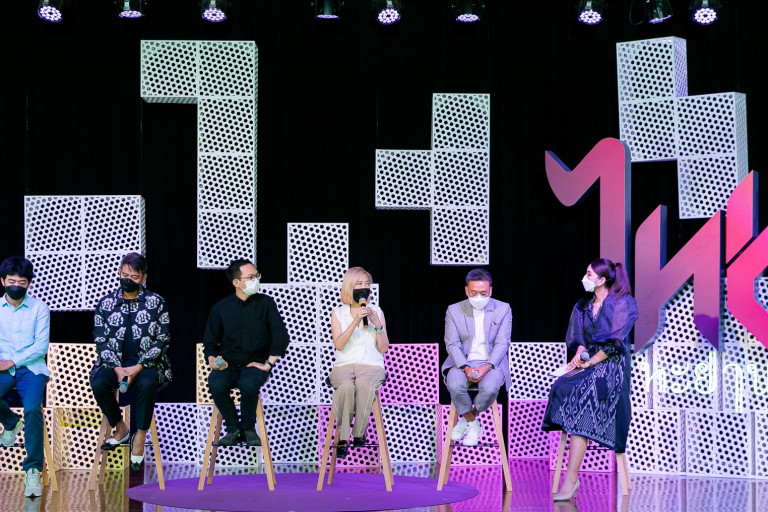 เริ่มต้นด้วยศิลปินนักออกแบบที่ประสบความสำเร็จอย่าง พลอยพรรณ ธีรชัย ตัวแทนจาก THINKK Studio ที่มาร่วมถ่ายทอดประสบการณ์การออกแบบเฟอร์นิเจอร์ เล่าว่า พลอยมีวิธีการคิดงานที่หลากหลายแนวคิดมากไม่ว่าจะเป็นการ Mimicry คือการประทับใจสิ่งไหนก็นำสิ่งนั้นมาแปลงหรือออกแบบในรูปแบบที่เราต้องการ หรือการ Redesign ในจุดที่เราอยากจะปรับปรุงให้ดีขึ้น โดยแต่ละไอเดียจะมีวิธีการออกแบบที่แตกต่างกันออกไป นอกจากนี้ สิ่งของรอบตัวที่เราพบเห็นก็สามารถนำมาเป็นแรงบันดาลใจได้ เช่น หม้อจิ้มจุ่ม ที่เป็นภาชนะมีหูจับทั้ง 2 ข้าง ซึ่งสะท้อนถึงวัฒนธรรมไทยที่มีการเคารพซึ่งกันและกัน รวมถึงการส่งมอบและยอมรับ ก็สามารถนำมาใช้เป็นไอเดียเพื่อออกแบบผลงานได้ จึงเป็นที่มาของคอลเล็คชั่น LOKALT ซึ่งได้นำภูมิปัญญางานฝีมือท้องถิ่นมาใช้ด้วย โดยเป็นความร่วมมือการออกแบบกับดีไซน์เนอร์จาก 3 ประเทศ ได้แก่ จอร์แดน อินเดีย และไทย ทำให้สินค้าของเรามีเอกลักษณ์