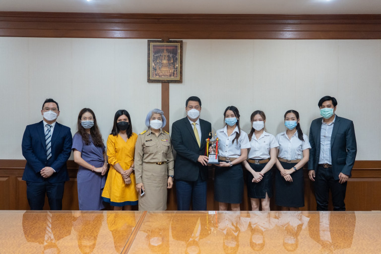 ผู้ช่วยศาสตราจารย์ ดร.สืบพงษ์ ปราบใหญ่ อธิการบดีมหาวิทยาลัยรามคำแหง แสดงความยินดีกับ นางสาวธนาภรณ์ วัฒนานนท์ นางสาวปวีณาจิรัสย์ นักเทศน์ และนางสาวสาริสา ชุติณบดินทร์ นักศึกษาคณะนิติศาสตร์ ที่คว้ารางวัลชนะเลิศจากการแข่งขันโต้เถียงปัญหากฎหมายโดยการแถลงการณ์ด้วยวาจาในชั้นอุทธรณ์ ระดับประเทศ ครั้งที่ 7 ประจำปีการศึกษา 2563 (Moot Court Competition 2020/2021) โดยมี อาจารย์นันทพล พุทธพงษ์ และอาจารย์ฐิติพร วัฒนชัย อาจารย์ประจำคณะนิติศาสตร์ เป็นอาจารย์ที่ปรึกษา เข้าร่วมด้วย เมื่อวันที่ 21 กุมภาพันธ์ 2565 ณ ห้องรับรอง 1 ชั้น 2 อาคารวิทยบริการและบริหาร